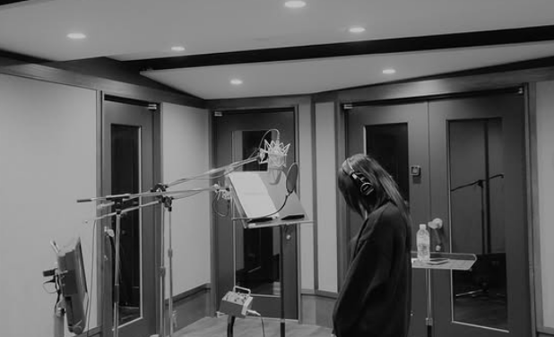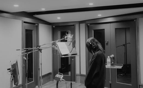ヘッドホンをつけ、マイクに向かう真剣な横顔は、まさにプロフェッショナルなアーティストそのもの。